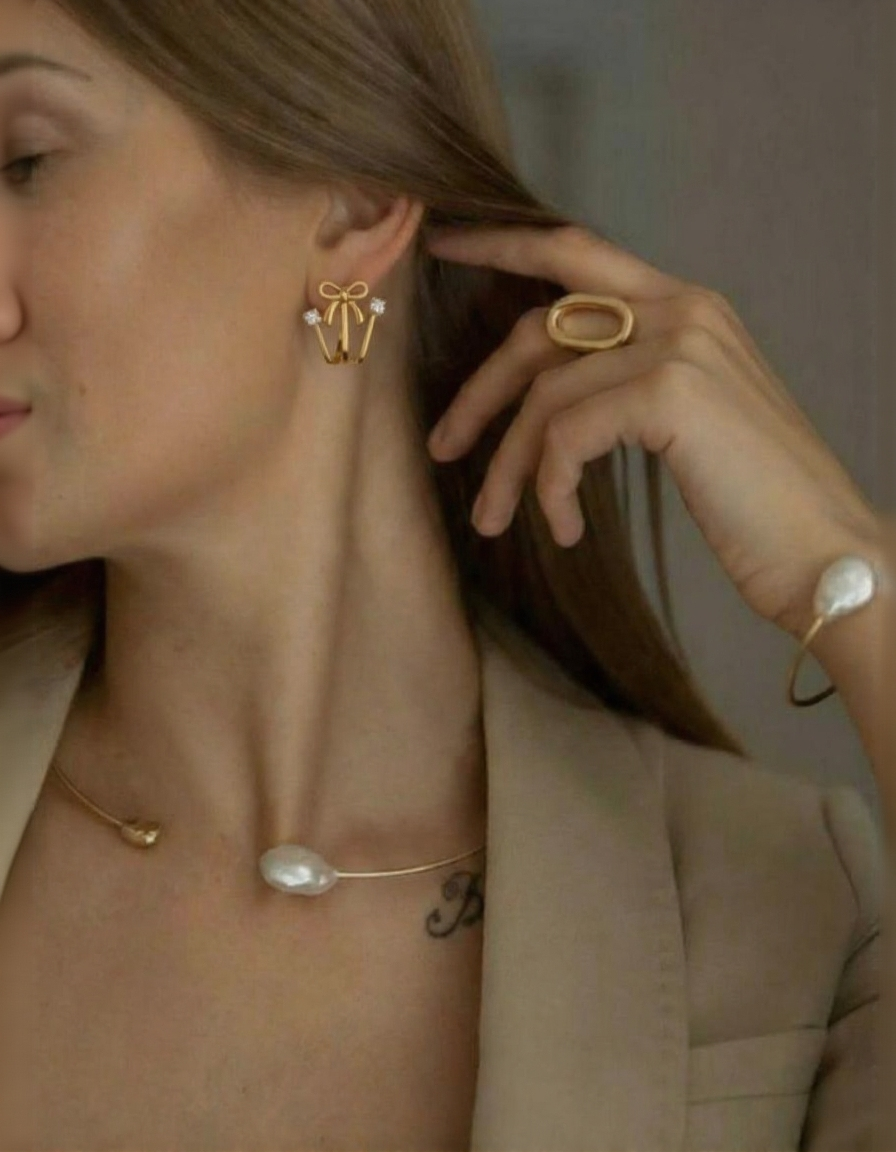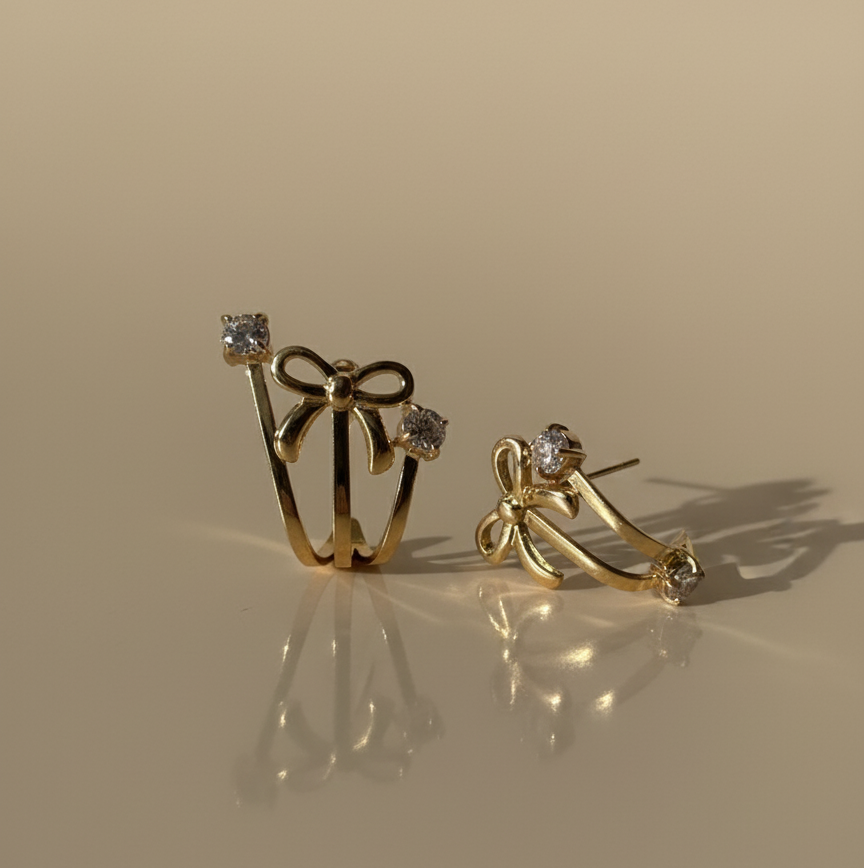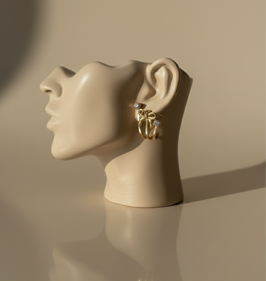 Pendientes con un diseño original en forma de lazo con un brillante detalle de circonita en cada extremo. Su forma de ear cuff o aro abierto abraza el lóbulo, ofreciendo un estilo moderno y sofisticado. Perfecto para un look diario o semiformal.