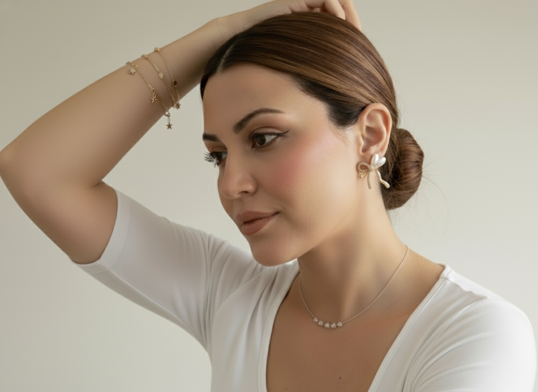Silueta Distintiva: La forma de lazo fluido crea un nudo elegante y moderno que se adapta perfectamente al lóbulo.